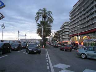 折しも夕陽が地中海に落ちるところで、何枚か写真を撮りましたが、あまり芸術写真にはなりませんでした。 「地球の歩き方」によれば、ニースの見所は「プロムナード・デザングレ」という海岸に沿った3.5Kmの大通りだそうですが、店が並んでいてもあまり面白くはありませんでした。 夏だと水着姿の女性が多いのでしょうが‥‥ (^_^ゞ。