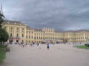 | ウィーンへの帰りが遅くなったので、「落ち穂拾い」は諦めまして、シェーンブルン宮殿へ。 今夜のオペラは宮廷劇場の《こうもり》です。 まずは観光ですが、時折強く雨が降りまして、庭園散歩からほうほうの体で逃げ帰りました。 宮殿内部は王宮と同じく写真禁止。 どこでも写真を撮らせてくれたアイゼンシュタットが懐かしいです (^_^; 。 ウィーンに行かれた方ならどなたもシェーンブルン宮殿には行っておられると思うので、詳細はカットさせていただきますが、モーツァルトが6歳の時にマリア・テレジア女帝の前で御前演奏したのはこの宮殿でした。 僕にとって一番興味があったのは、もちろんミュージカル《エリザベート》第一幕、『最後のダンス』の舞台となった『鏡の間』。 この部屋では椅子が並べられ、夜のコンサートの準備が進められていました。 せっかく入った『鏡の間』なのに、残念ながら、宮殿内部は撮影禁止なんですよね。