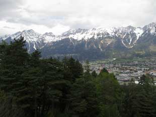 アンブラス城の正門を入ると、そこには庭園と大きなレストランがあり、大変混雑していました。 5月1日はメーデーですから、休日なのでしょうか。 ここから見上げるアンブラス城は高い場所にあり、もし見学すれば往復2時間はかかり、僕はますます疲労困憊してしまうでしょう。 特にこのアンブラス城に思い入れがあるわけでは無いので、ノルトケッテの眺望を確認しただけで、次のサイトシーアバスでインスブルック王宮前に戻りました。