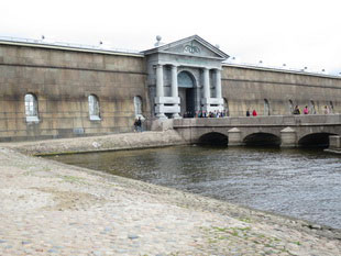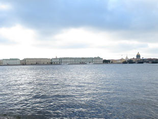 | サンクトペテルブルク最後の日は、歴代皇帝のお墓参りでペトロパヴロフスク要塞へ。 ペトロパヴロフスク要塞の城壁外からネヴァ川 と エルミタージュ美術館を望むことが出来ます。 軍港に係留されているのが巡洋艦「オーロラ」号。 1917年10月25日午後9時45分、「オーロラ」号から合図の号砲が発せられ、臨時政府の閣僚が残る冬宮に対する攻撃が始まりました。 「十月革命」です。 冬宮は、ほとんど抵抗らしき抵抗はなく、26日の午前2時ごろに占領され、臨時政府の閣僚たちは逮捕され、ケレンスキーは冬宮を脱出し最終的に国外へ逃れました。 十月革命によりボリシェヴィキ主導のソビエトへと権力が集中されました。