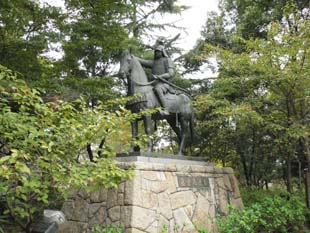 本丸跡は噴水のある「お城公園」になっていましたが、奥に高虎の騎馬像が見えます。 この高虎の像は、17日に見た滋賀県甲良町の高虎の像と同じに見えました。 津城の高虎像は1988年に建てられたようです。 本丸の奥に、藩祖高虎を祭神とする高山神社がありました。 新しい建物でした。