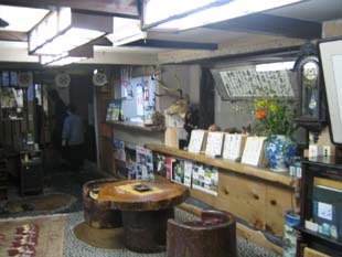 ◇福田屋旅館 福田屋の前には踊り子の座像がありました。 当然ながら旅館は古い建物ですが、今でも営業されています。 ロビーを見学させていただきましたが、「伊豆の踊子」にまつわる資料や、川端康成自筆の書が展示されていました。 川端康成が泊まった部屋は2階にあり、この部屋で「私」は「踊り子の今夜が汚れるのであろうか」と悩ましい夜を過ごしたわけです。
