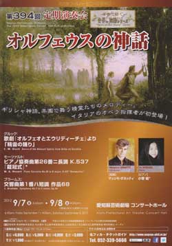 | 名フィル第394回定期演奏会『オルフェウスの神話』 指揮:マッシモ・ザネッティ ピアノ:小菅 優 2012年9月8日(土)4:00PM 愛知県芸術劇場コンサートホール |